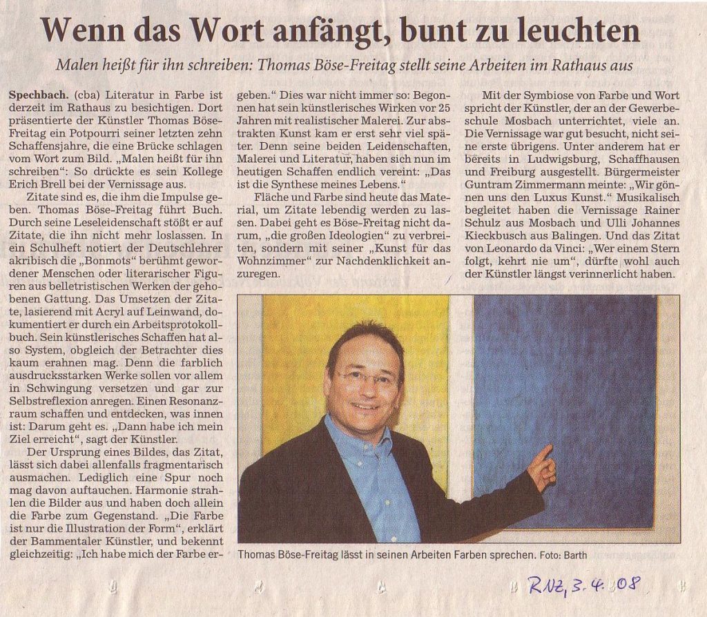 Ausstellungskritik, Quelle: Rhein-Neckar-Zeitung, 3. April 2008