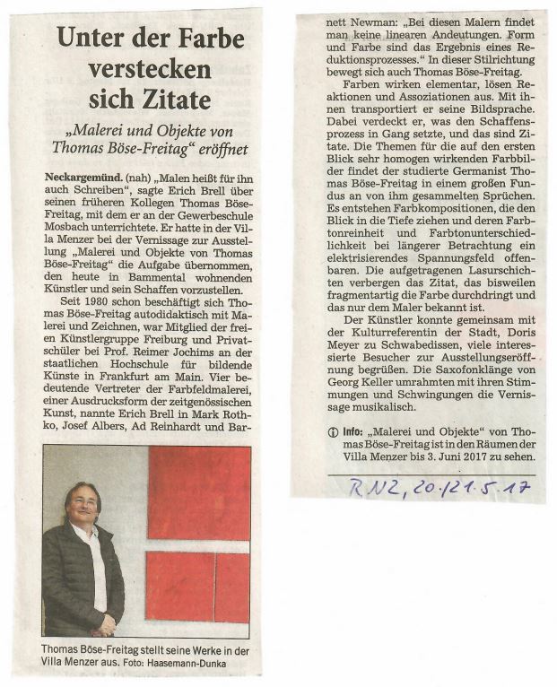 Ausstellungskritik, Quelle: Rhein-Neckar-Zeitung, 20./21. Mai 2017